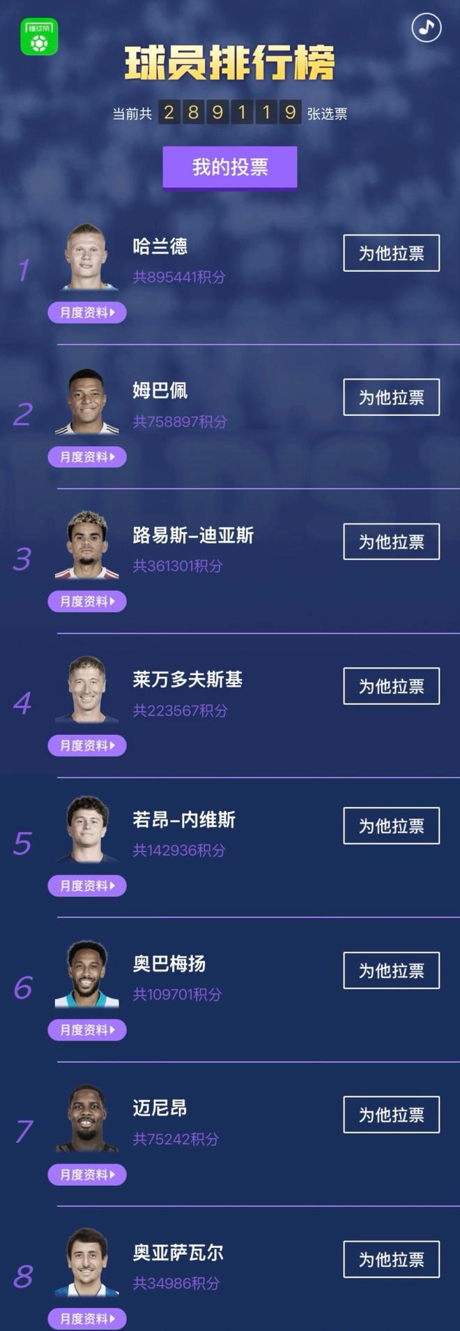 球迷朋友们大家好,欢迎来到懂球帝国际足坛月度MVP评选。经过球迷投票,哈兰德力阻姆巴佩三连庄,在连续三期入围的情况下首度当选月MVP。